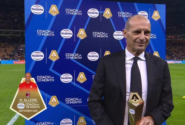 在意甲第8轮,米兰主场迎战比萨的比赛即将打响之前,米兰队的主教练阿莱格里,领取了一份专属于他的殊荣。这份殊荣,正是意甲联赛的9月最佳教练奖!在9月,米兰队出战了3场意甲联赛,他们的对手分别是博洛尼亚、莱切以及那不勒斯。最终,在阿莱格里的带领下,米兰队三战全胜,战绩斐然!最终,阿莱格里凭借这骄人的战绩,被评选为意甲联赛的9月最佳教练,并且,在本场比赛开打之前,他亲手接过了这座沉甸甸的奖杯!